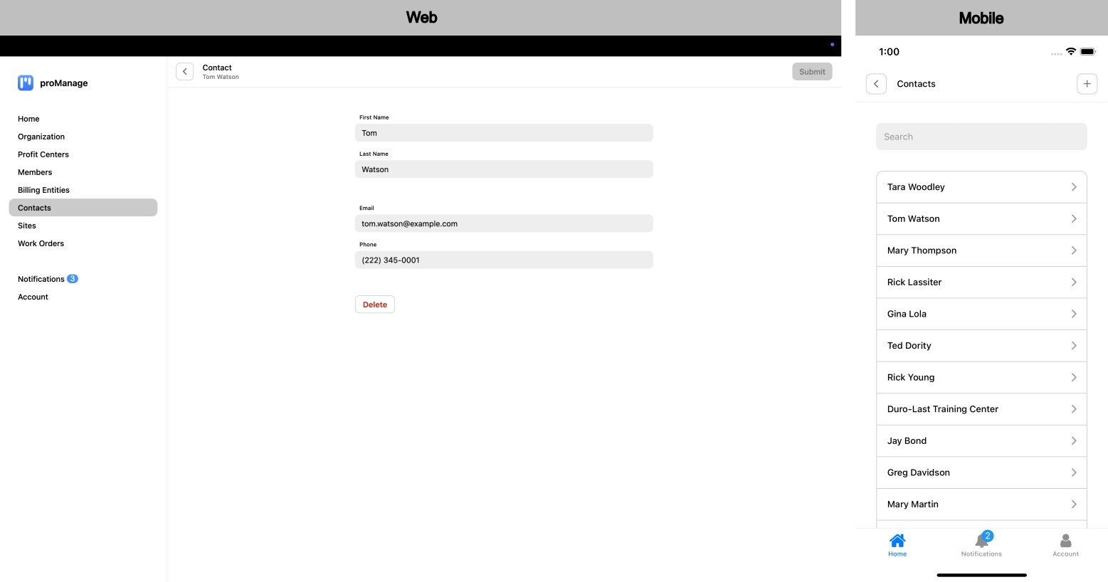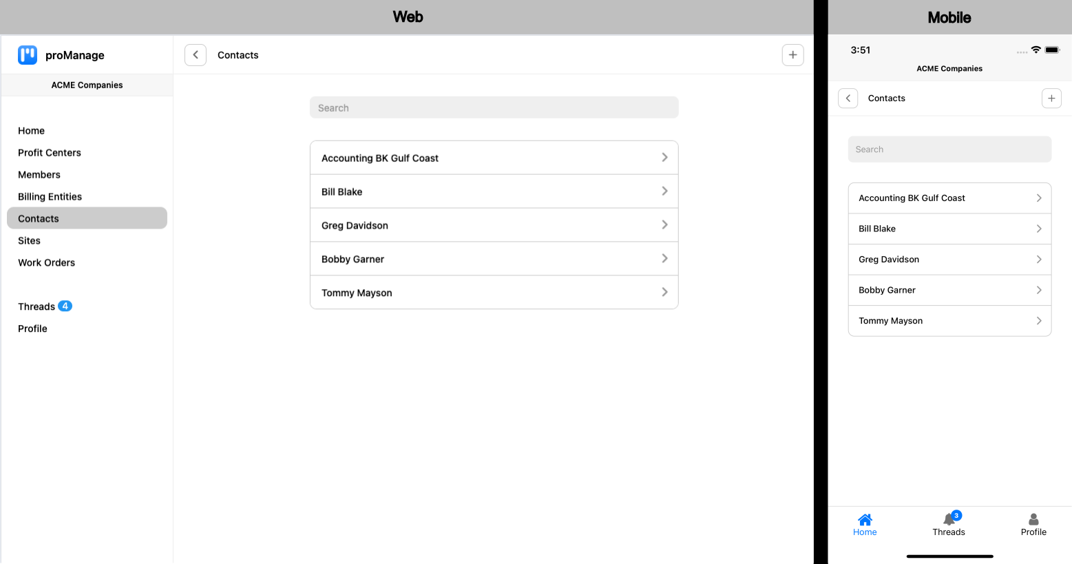 Contacts are a collection of all contacts - customer site contacts, billing entity contacts, or business contacts.